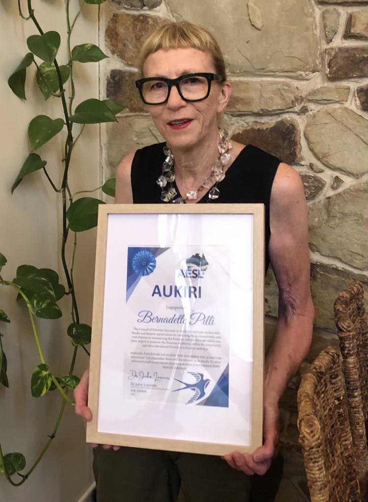 AESL expresses its heartfelt gratitude to Bernadette for her longstanding commitment to supporting Estonian culture. Through her work with the Melbourne Estonian Society, she has played a key role in maintaining traditions within the community and sharing Estonia’s heritage with a wider audience.