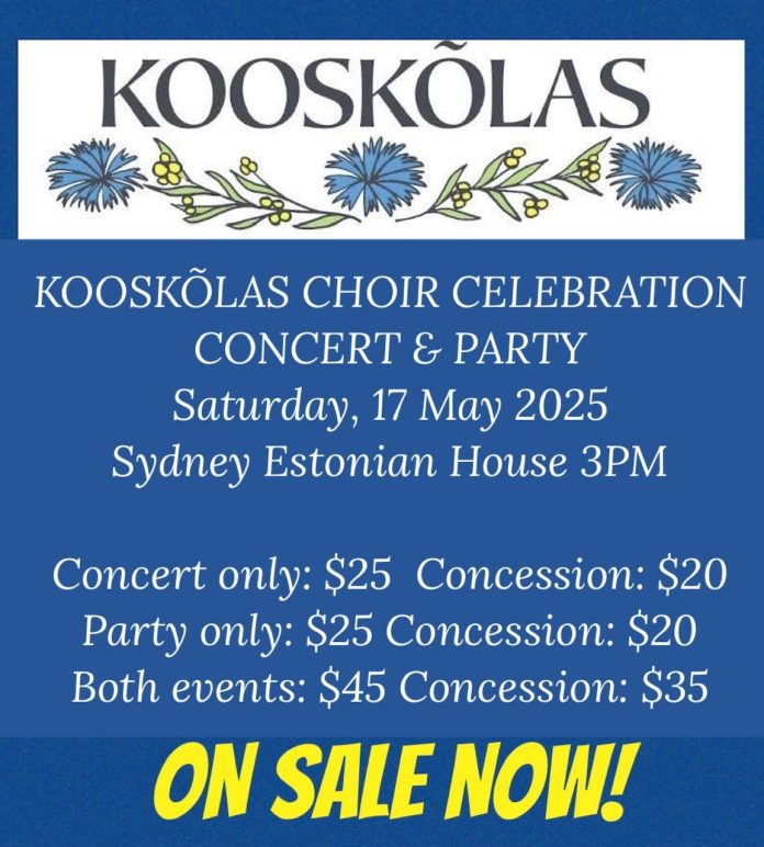 Saturday, 17 May @ 3 PM. Join us for an unforgettable afternoon and evening of music, joy, and community, as the Kooskõlas Choir presents a special Concert and Celebration Party in Sydney – raising funds for our journey to Laulupidu 2025 in Estonia! ✨🎵✨🇪🇪