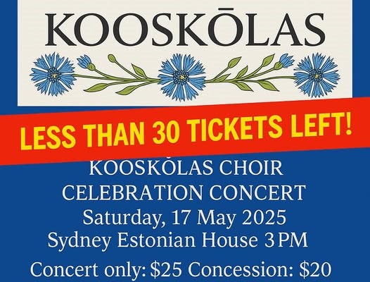 An exciting opportunity awaits at the Kooskõlas Choir Celebration Concert & Fundraiser this Saturday, 17 May at 3pm in Sydney. Thanks to the generous support of Aero Travel, all concert attendees will have the chance to enter a special raffle draw and win an unforgettable Estonian experience.