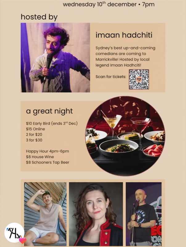 Angelina tells us that Sydney’s stand-up circuit isn’t easy. She describes it as tight-knit, small, political and entirely dependent on persistence. You put your name in a bucket, wait for your five to ten minutes, and hope someone remembers you next time. Few earn money; most perform simply because they love it.