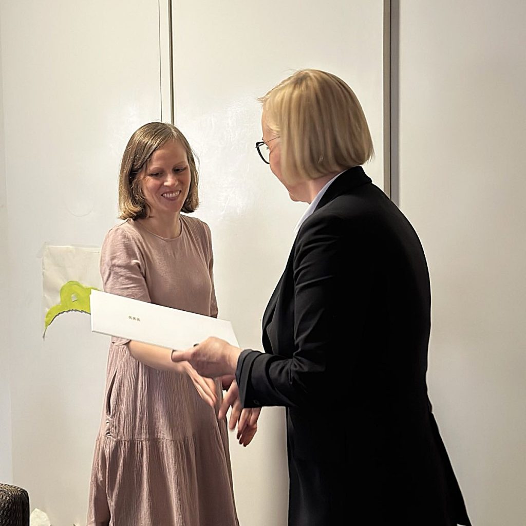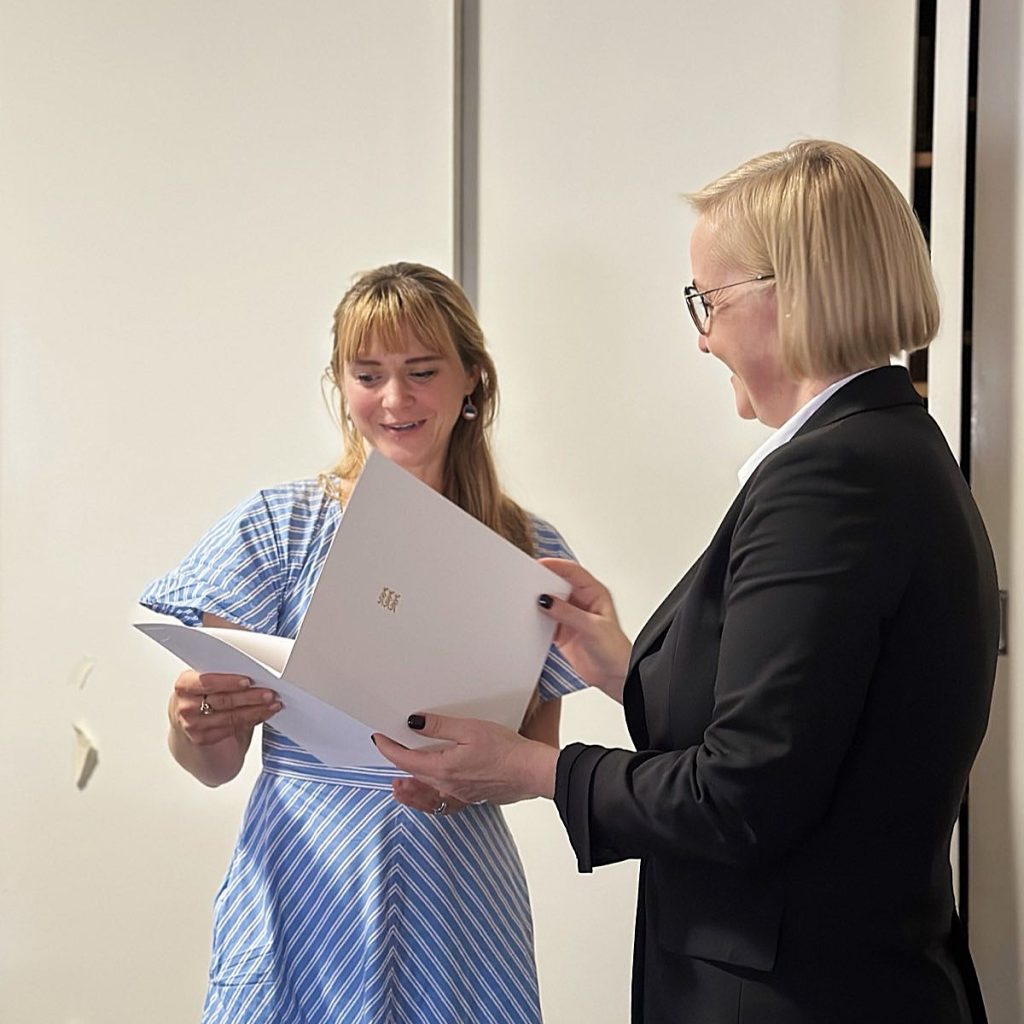 Photos of Estonian Australian language teachers receiving their letters of appreciation from Kristina Kallas, 28 November 2025, Estonian House in Melbourne. Anneli Lill (top left), Iti Connor (top right), Grete-Stina Witcombe (bottom left) and Kätriin Vinkmann (bottom right). Source: Estonian Ministry of Education and Research.