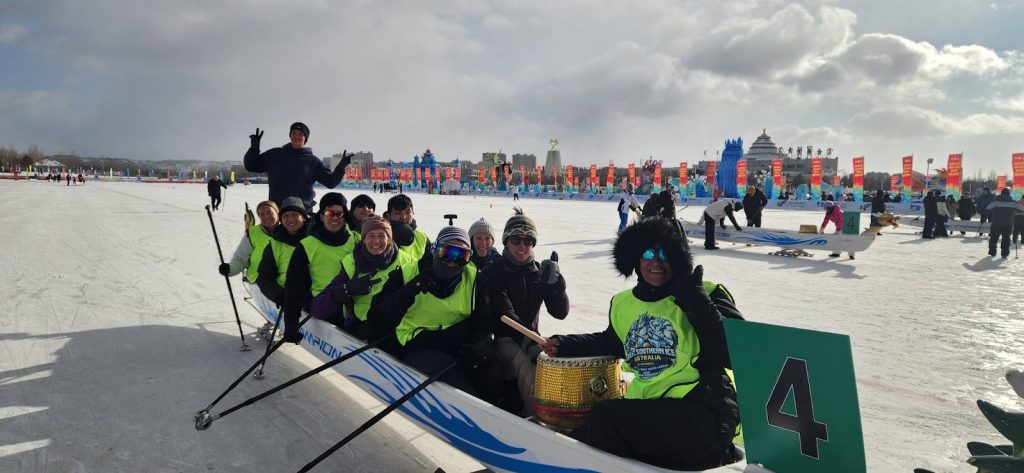I went to Inner Mongolia in China to compete in Ice Dragon Boat racing. No Australian team had ever been before, and we were really lucky to have the opportunity to go. We were invited by the local organising committee to send a team from Australia to compete.